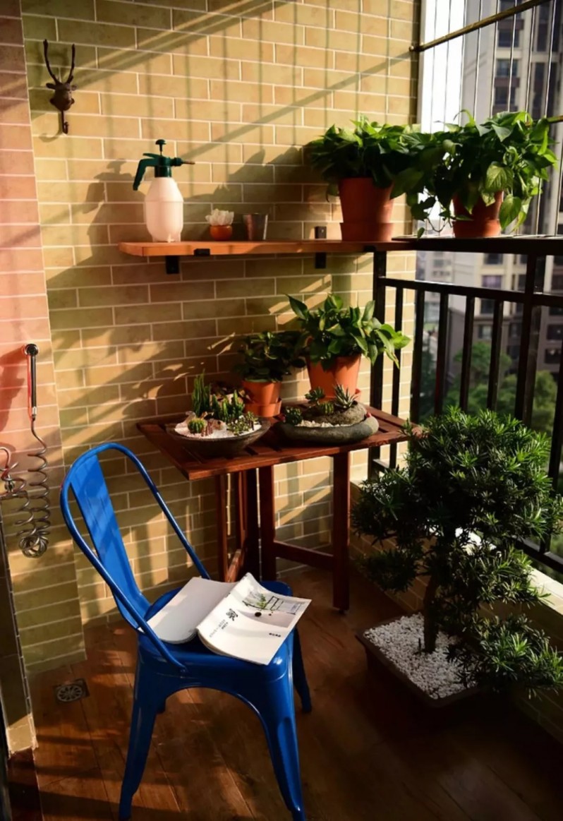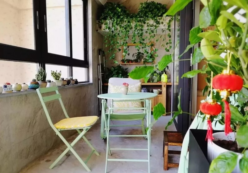 如果阳台面积允许,那么多一些不同种类的盆栽来点缀阳台,这样的空间氛围也是相当的不错的。