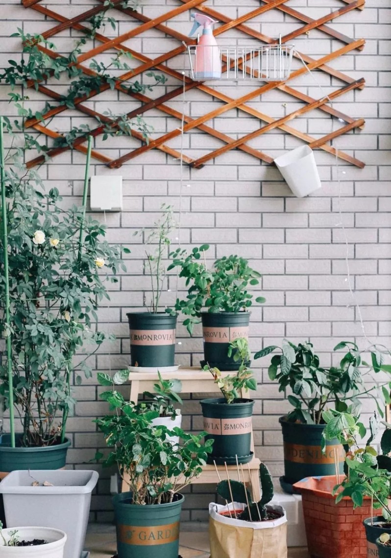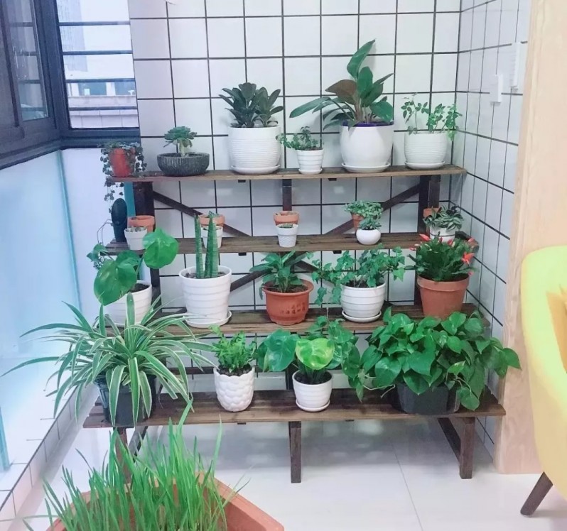 如果不想要太多的花盆花瓶,那么种些比较长的植物,比如绿萝之类的,效果也是挺不错的;