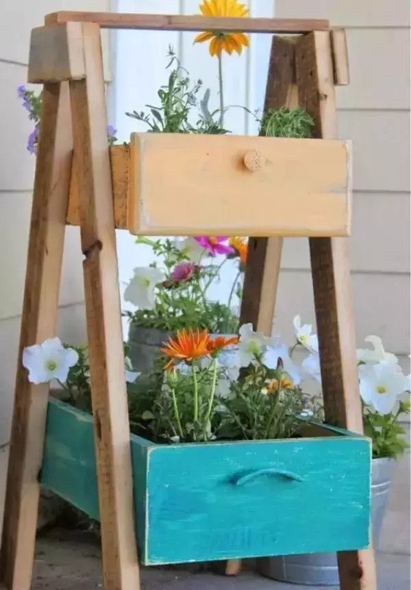梯子的每一层都钉个抽屉,不管是收纳杂物还是养些花花草草,都是一种乐趣。