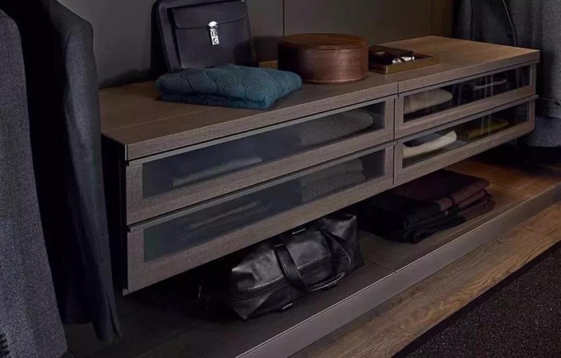 衬板:将衣物或配饰放在带滑轨的推拉衬板中,搭配、取用一目了然。