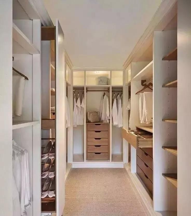 L型衣帽间具有强大的储物功能与实用性,比较适用于宽长形的空间。