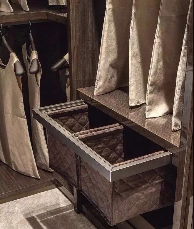 Tips:如果你是一个非常注重细节的人,还可以增设领带架或升降衣杆,把所有关于折痕的顾虑都排除在外,为自己的衣帽间再添亮点。