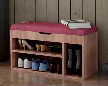 小户型玄关的地面可以摆放兼具鞋柜和储物柜功能的换鞋凳,不仅可以满足每次坐着换鞋的需求,还能充当临时存放快递的柜子呢,根据家里实际户型大小在某宝定制即可。