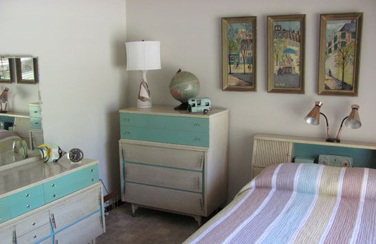 多数人虽然喜欢有创意的灯具设计,但出于保守的整体卧室风格考虑,最终依然会选择中规中矩的灯具。这个八十年代风格的卧室搭配一个老款射灯,就是个不错的选择,简单的外形和整洁的卧室相得益彰,暖暖的灯光让卧室充满温馨。