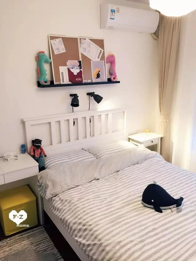 △如果两边都安装床头灯,尽量是一个床头灯,一个控制开关,并且尽量灯的开关设置在两人中间的位置,这样两人使用比较方便。