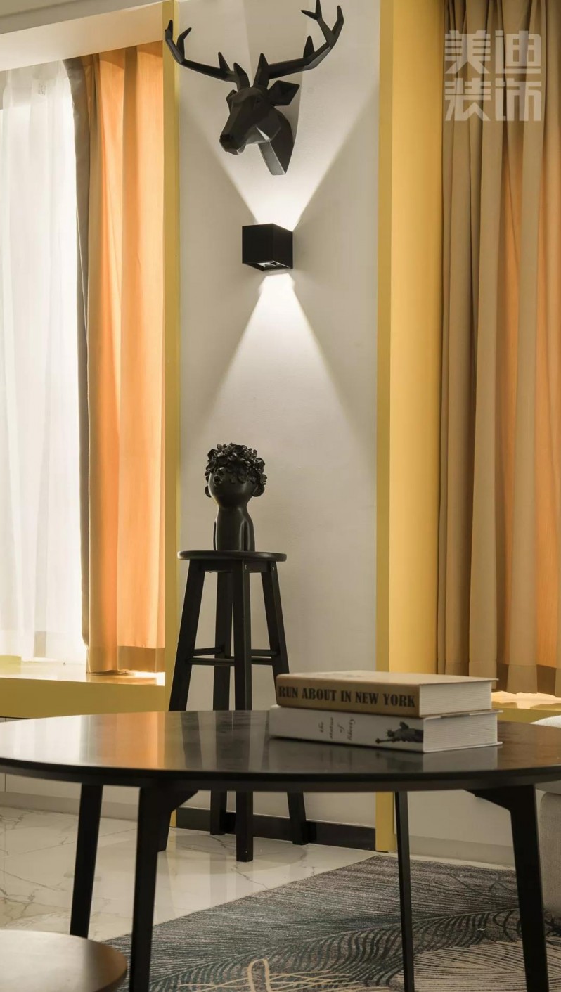 设计师巧妙地运用上下壁灯来体现出空间的层次感,充满设计与艺术感装饰摆件,让空间充满艺术气息。
