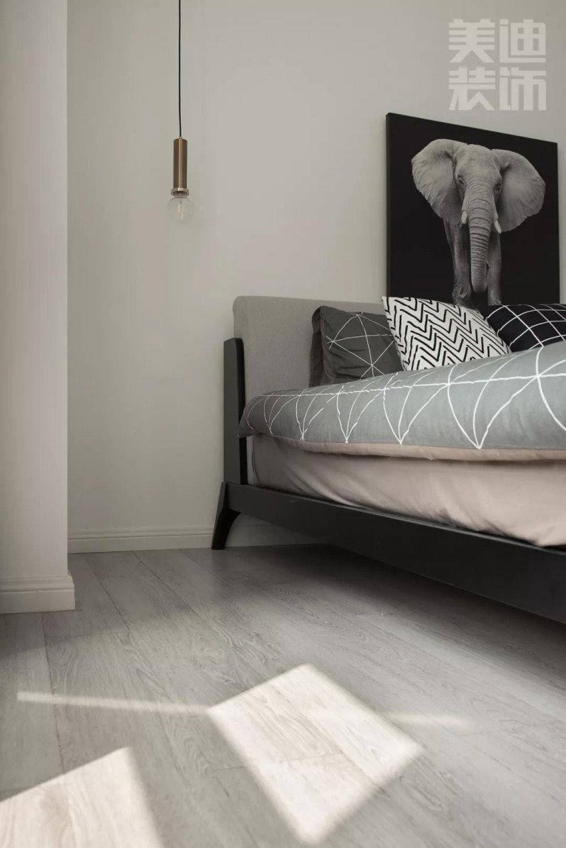 次卧空间不大,墙壁和天花板刷白,让室内显得明亮通透,原木地板更有质感。