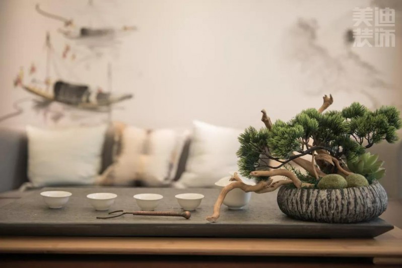 在喧嚣的都市,伴随着快节奏的生活,休息日的时候,你是否也不愿出门,就安静的在家“宅”一天。我们需要的是“诗意的栖居”,因此设计师将对山水意境的思考作为本案主体思想,贯穿设计的始终。
