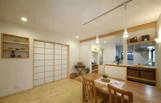 3、日式家居中强调的是自然色彩的沉静和造型线条的简洁,和室的门窗大多简洁透光,家具低矮且不多,给人以宽敞明亮的感觉。