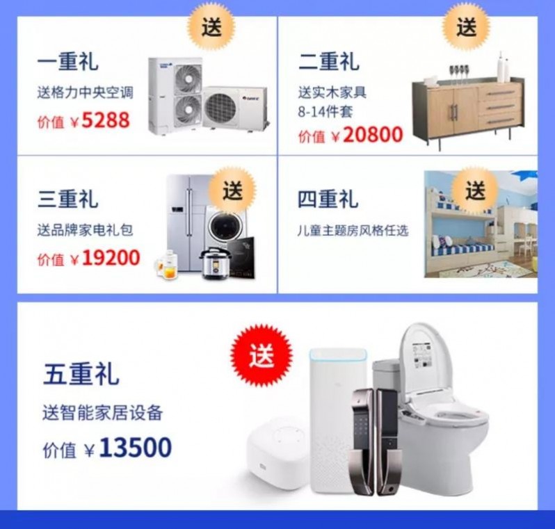 五重豪礼免费派送 中央空调、全房家具家电、智能大礼包、儿童房