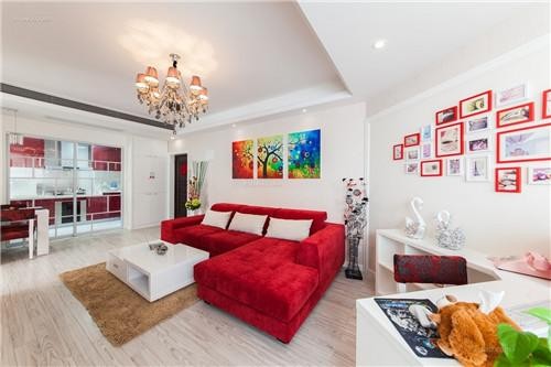 婚房装修虽然主要讲究的是喜庆的气氛,但是如果喜庆过度,效果就不是很好了。可以采用中国红的元素来体现整体上的浪漫幸福气氛。而墙面和地面是居室内面积比较大的区域,所以它们的色彩应该选用与家具色调相近的。