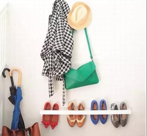 充分利用高跟鞋的后跟优势将其悬挂在墙壁,这对于小户型但又是鞋教教徒来说,墙面的充分利用就很好。
