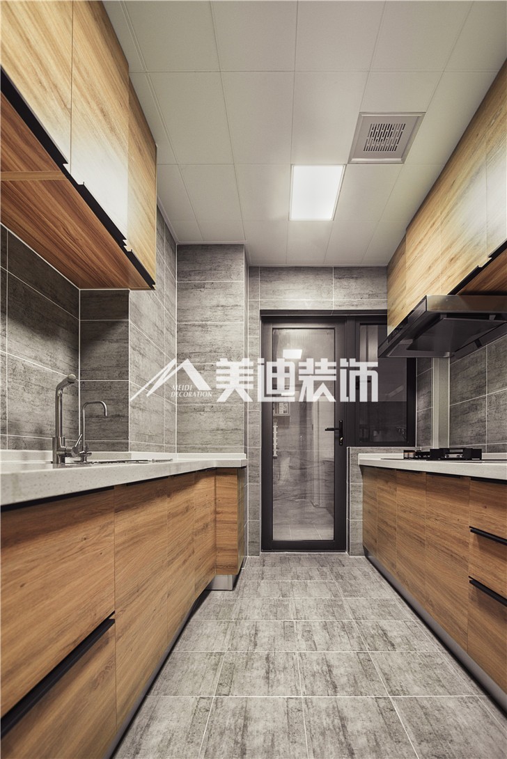 二字型厨房布局:顾名思义就是双操作台,但是比U字型布局少了转角位置。二字型厨房同样要求宽度要够,容得下双操作台和通道。