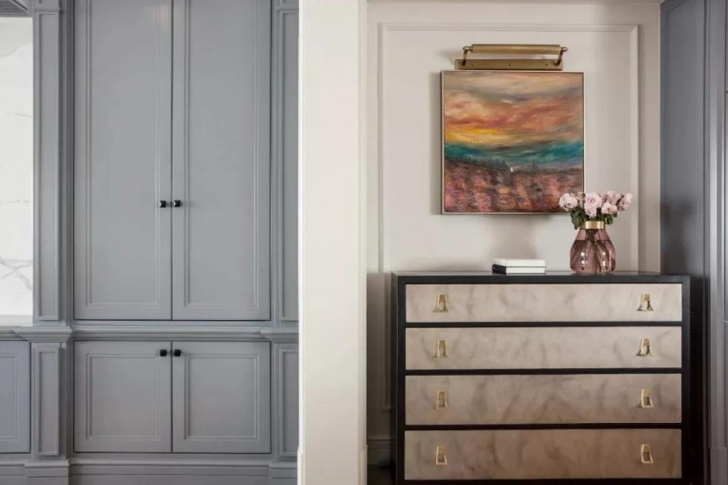在色彩上选择用深灰蓝,诠释优雅的古典风情,以浪漫情调,精心描绘理想居家生活的模样。