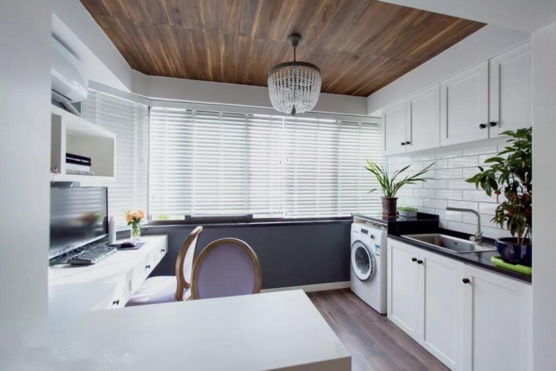 有时卫生间面积不大,放了洗衣机就没什么空间了,那就把它塞进厨房吧。厨房有上下水,水路的改造方面不会太麻烦而且国外非常流行这样的方法。