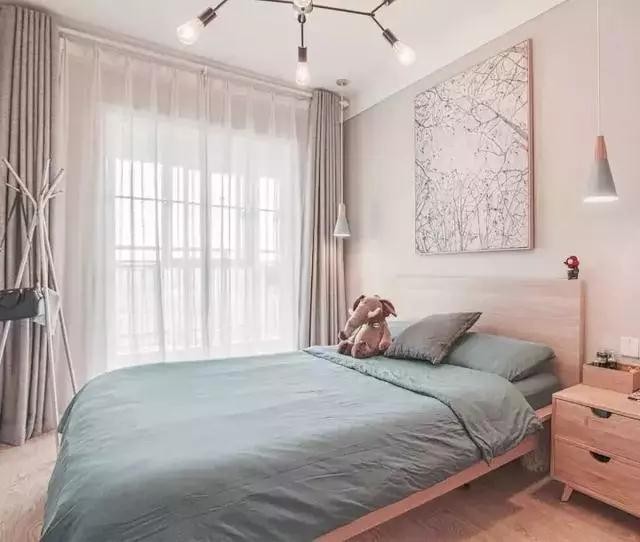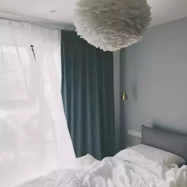 首先来讲讲卧室的窗帘吧,卧室最重要的肯定是隐私性和一个比较舒适一些的睡眠环境,所以遮光帘是必不可以少的,在内部加一层纱帘,就能够有两种不同的感觉。