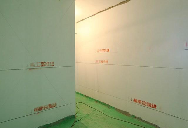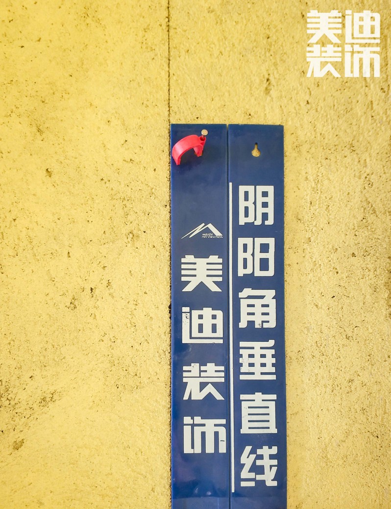 ▲ 墨斗弹线已完成,水电师傅定开关插座高度,门窗师傅量数安装,贴地砖师傅都要已这条线为标准。