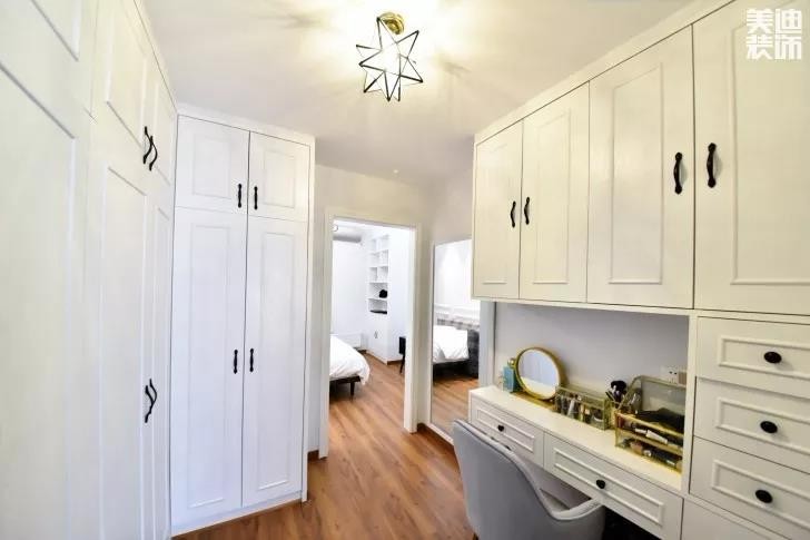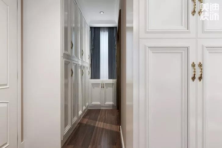 卧室进门位置或卧室与主卫之间的通道都是可以利用的,将它设计成通道式的衣帽间,虽然紧凑但也要实用不少。