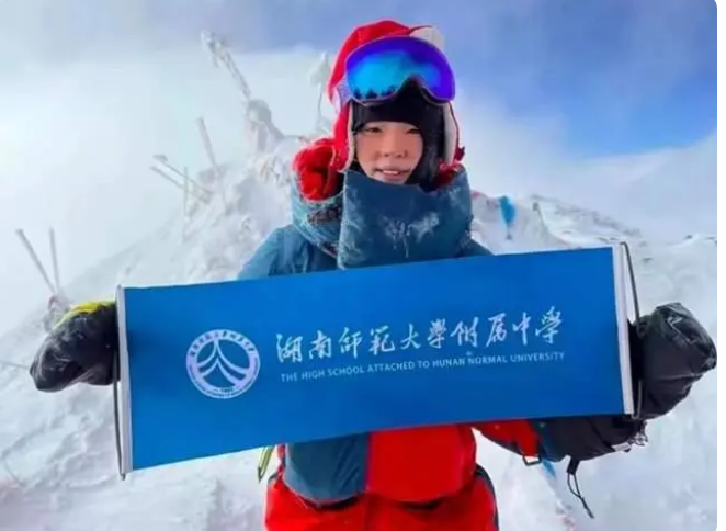 2023年5月15日,徐卓媛成功登顶世界第一高峰珠穆朗玛峰,成为从南坡登顶珠峰年龄最小的中国攀登者。16岁的她就读于湖南师范大学附属中学,已攀登过五座5000米以上的高山,足迹遍及全中国。