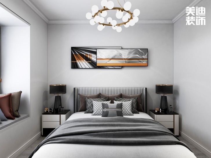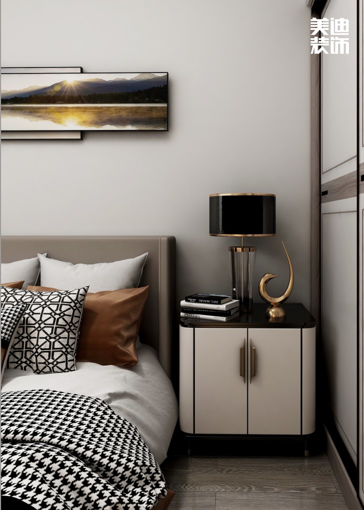 五矿万境水岸95㎡北欧轻奢风格案例效果图—卧室