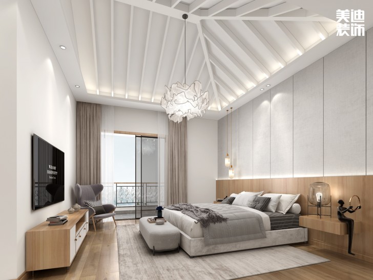 天麓尚层120㎡现代简约风格案例效果图—卧室